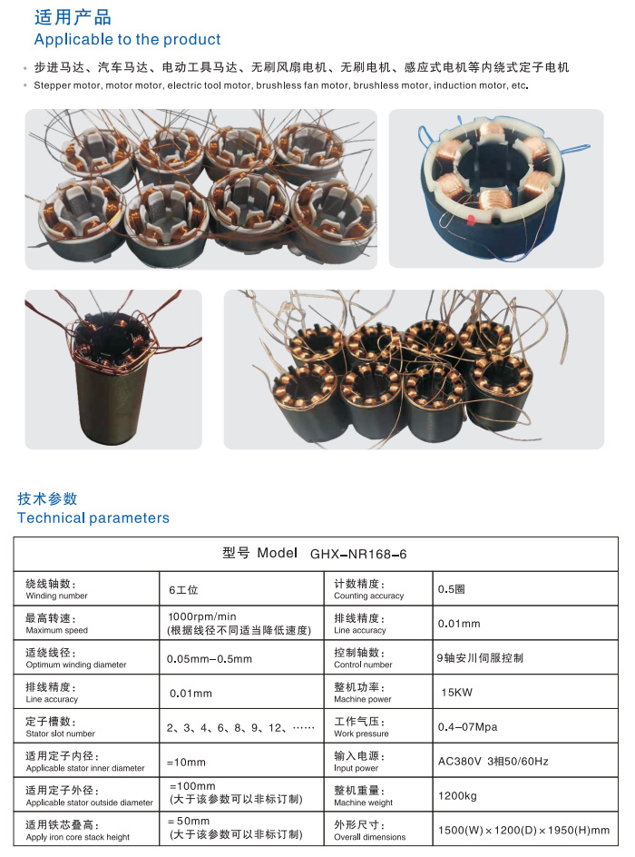 设备主要驱动系统采用日本安川伺服,控制系统,可以通过电脑程序实现全自动缠脚,过线、绕线、跨槽、抽头、夹、剪线,定子360°任意正反旋转位置,实现各种不同产品精密排线方式产品编程简单方便,搭配安川专用软件,可无限存储程序,通过简单培